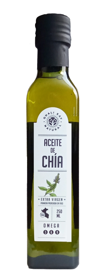 El aceite de chía se extrae de las semillas mediante un proceso de prensado en fríopara conservar todos sus nutrientes y propiedades. Es un aceite ligero de color doradoclaro, con un sabor suave y delicado, similar al aceite de linaza.
